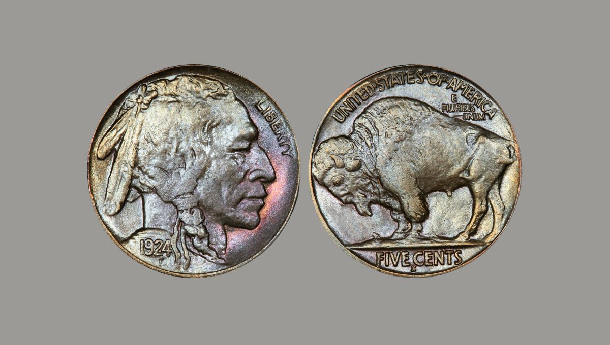 Las monedas de 1924-S tienen una marca de ceca "S" ubicada en el reverso, debajo de la inscripción "FIVE CENTS", indicando que fueron acuñadas en la Casa de la Moneda de San Francisco. Con solo 1,4 millones de unidades producidas, esta versión es una de las más raras de la serie Buffalo Nickel, que estuvo en circulación entre 1913 y 1938.