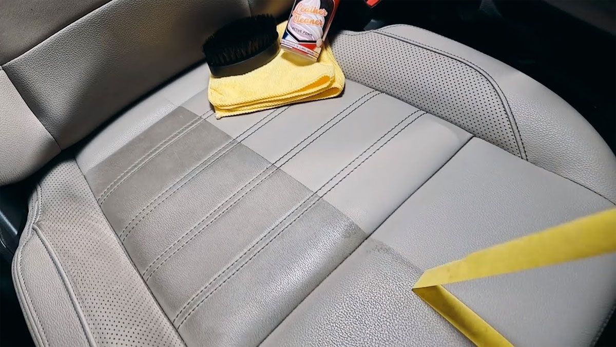 - Con un paño de microfibra y un limpiador para tapizados de cuero, repasar las superficies hasta que no queden manchas de ningún tipo. Dejar secar.