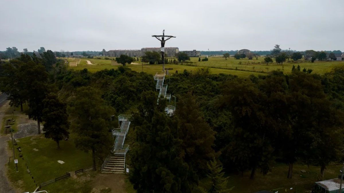 Ubicado en la rotonda de la Ruta Provincial 41, este lugar cuenta con una gran escalera con miradores que te llevan a un Cristo de madera, desde donde también se puede apreciar la ciudad desde la altura.