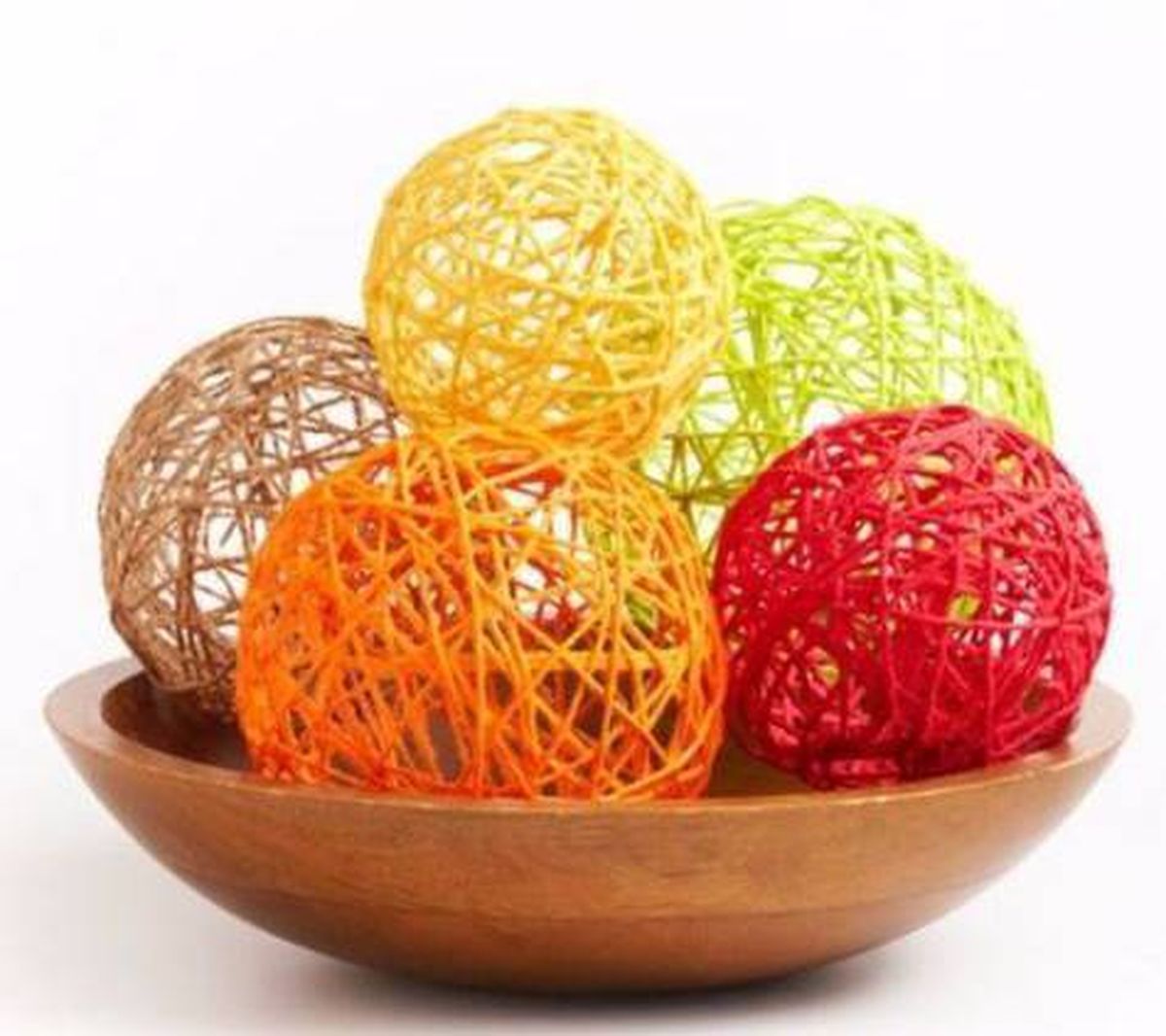 Por último, cuando observes que está completamente seco explota el globo y saca el excedente dejando únicamente la esfera con hilo. Para terminar, coloca las pelotas en una fuente y listo, tendrás un hermoso centro de mesa.