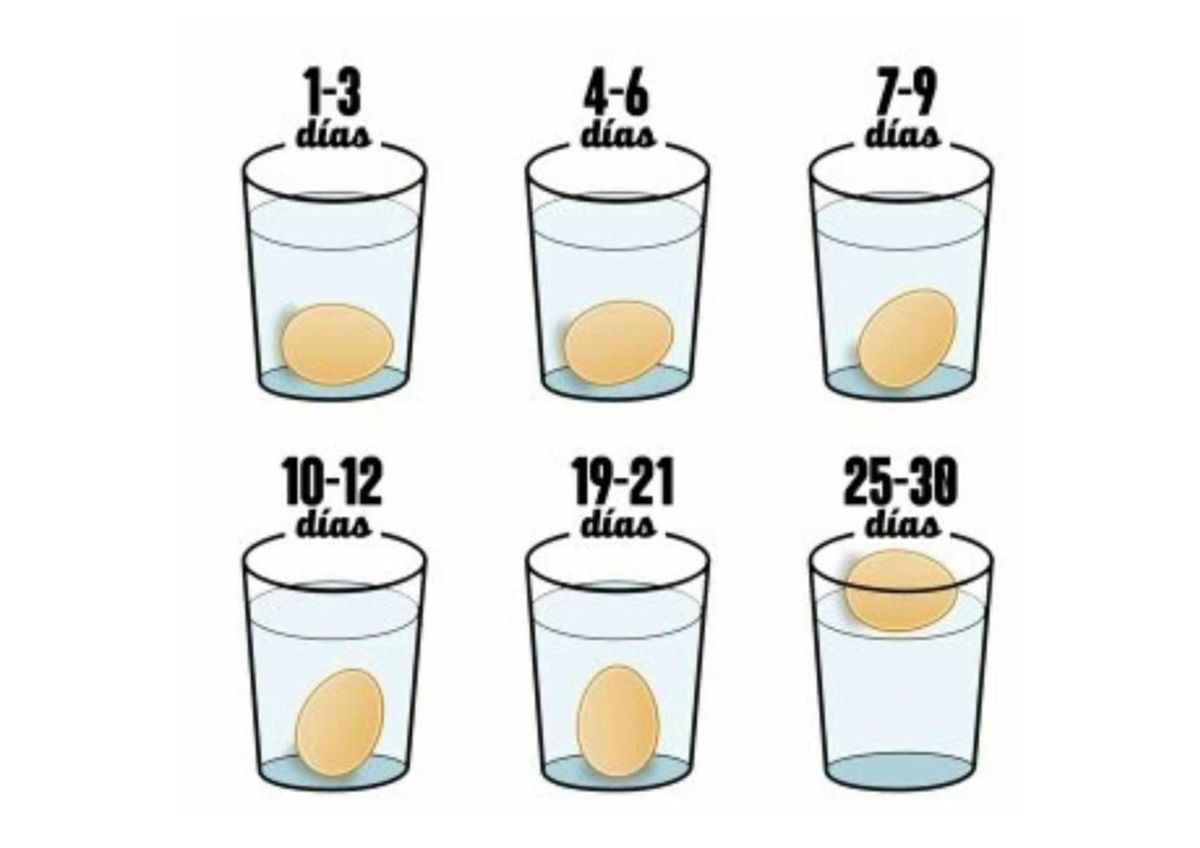 Lo cierto es que el huevo, a medida que pasan los días, va perdiendo sus propiedades, textura, sabor y calidad. A continuación te presento una guía o gráfica que representa la edad de los huevos y la forma de percibir rápidamente la cantidad de días que tienen.