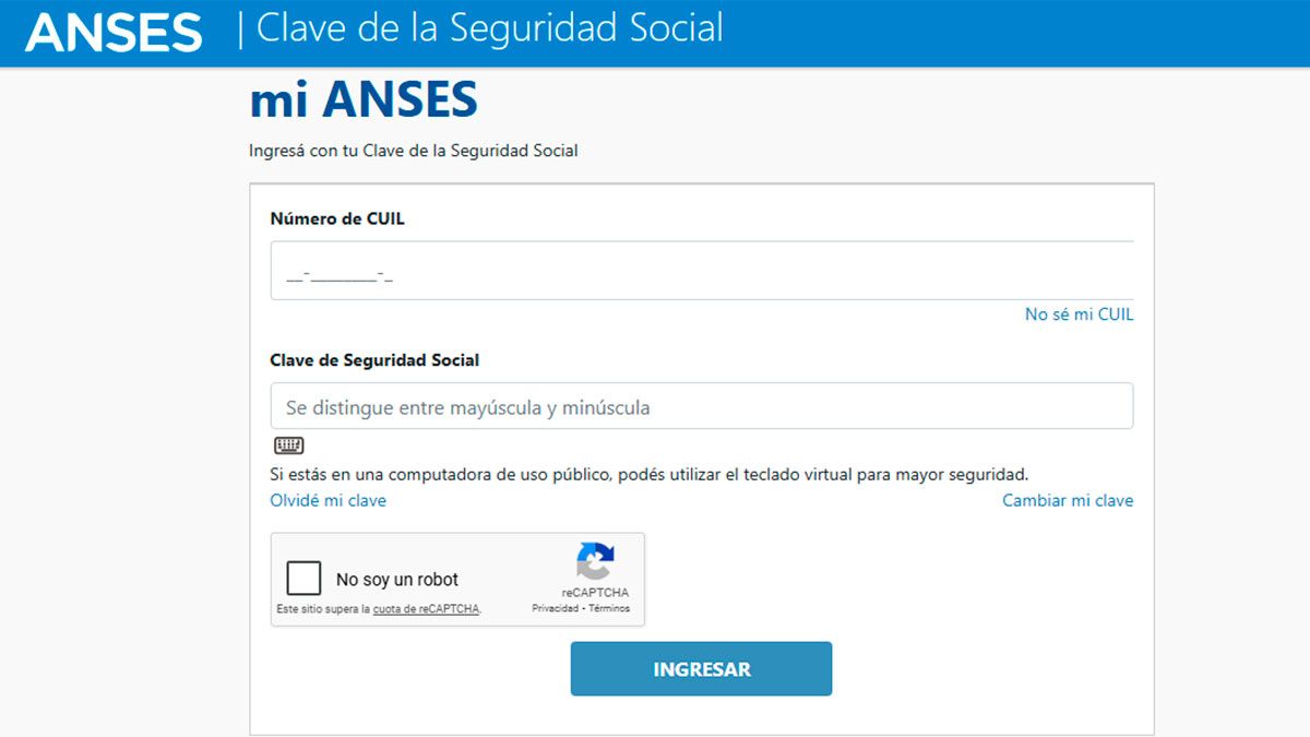 - Iniciar sesión con CUIL y Clave de la Seguridad Social