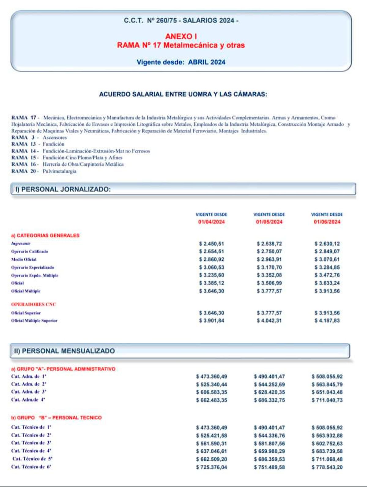 Una gran cantidad de trabajadores que pertenecen a un sector importante de la economía argentina obtuvieron un nuevo aumento de sueldo trimestral del 18,13%, para el período abril, mayo y junio, en el marco de la paritaria de la rama 17, y será no remunerativa.
