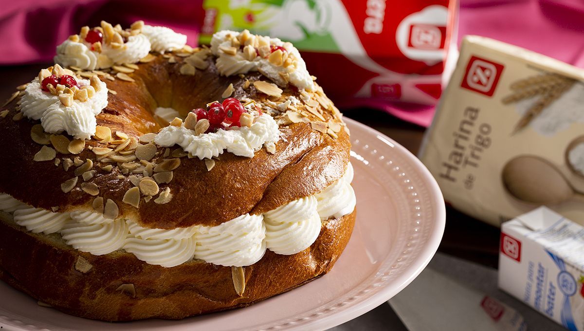 - Para montar la corona de Almudena se debe cortar el bollo por la mitad y agregar el relleno.