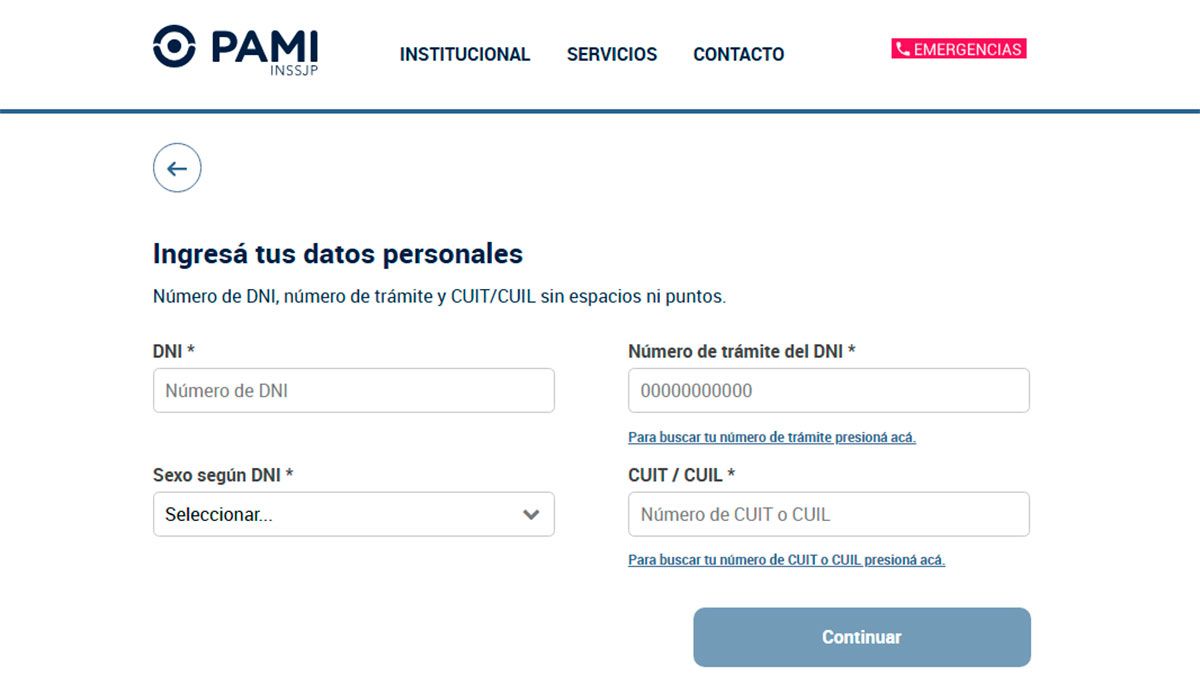 - Los datos del titular son validados con ANSES y RENAPER. Ante algún problema de validación, solicitaremos los datos correspondientes para que un trabajador de PAMI evalúe el caso y se comunique a la brevedad para continuar la gestión.