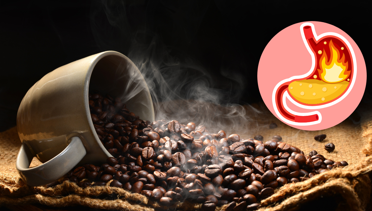 El café es rico en ácidos como el clorogénico y el quínico, puede dar mayor acidez estomacal debido a una disminución en la producción de bicarbonato y la capacidad del cuerpo para regular el pH gástrico.