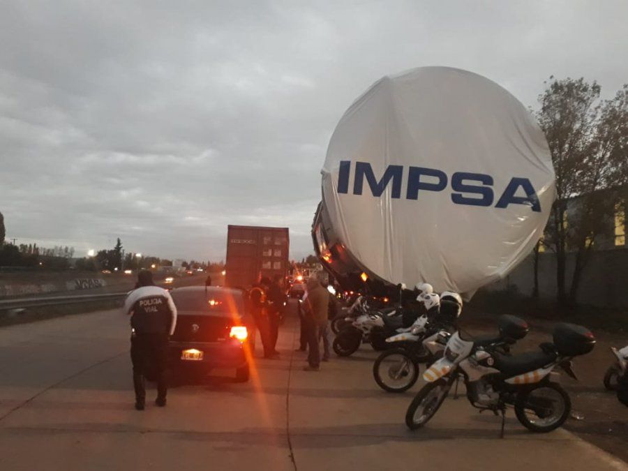 Este lunes se retomó el operativo vial del traslado del horno que IMPSA fabricó para la destilería de YPF de Luján de Cuyo, y el tránsito se vio muy afectado. Se espera que hasta las 16 horas continúen las largas filas y el movimiento vehicular a paso de hombre.