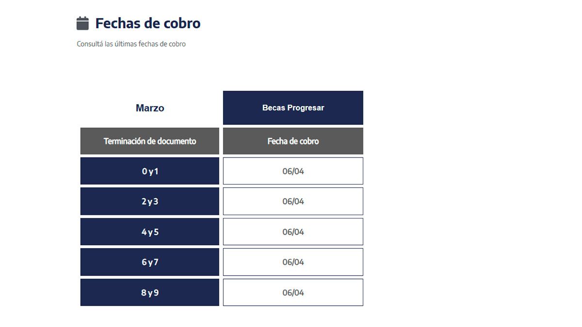 La ANSES confirmó en su página web que la última cuota del periodo 2025 de las Becas Progresar se pagará, a diferencia de los meses anteriores, el lunes 6 de abril para todas las terminaciones de DNI (Documento Nacional de Identidad).