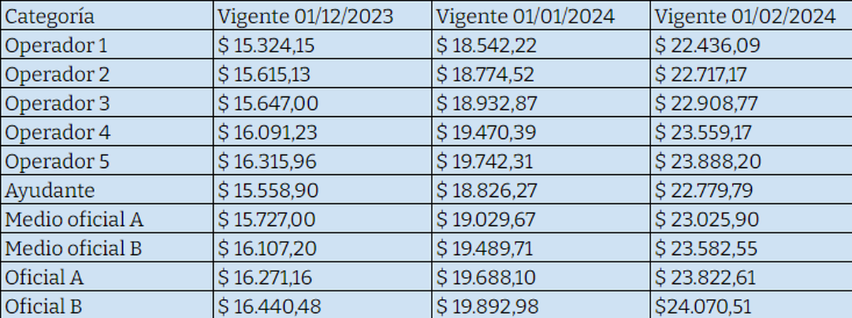 En cuanto a los jornales básicos de los trabajadores, estos pasaron a ser de $22.436. Si se multiplica por la cantidad de días promedio de trabajo en un mes, el aumento llevaría a los sueldos a un total de $ 493.592.