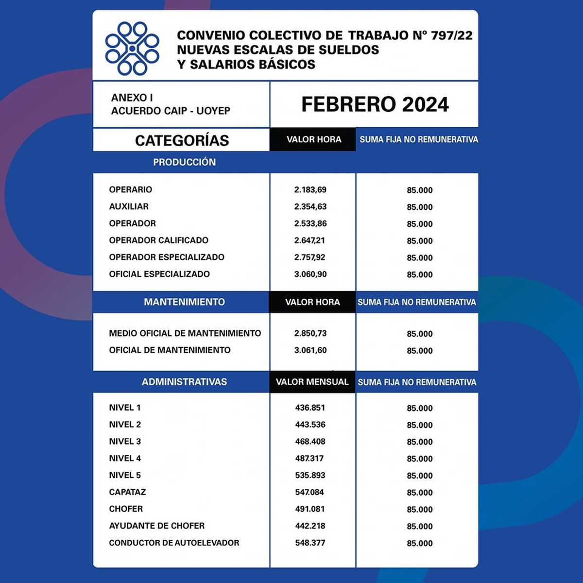La Unión Obreros y Empleados Plásticos (UOYEP), el sindicato que nuclea a los trabajadores del sector, llegó a un acuerdo de aumento de sueldo con la cámara empresaria CAIP.
