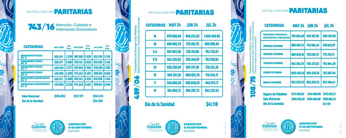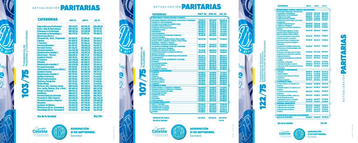 Los trabajadores de un importante sector de la sanidad lograron un nuevo e importante aumento de sueldo llevando, en algunos casos, los salarios mínimos a $1.020.485 en el periodo abril-julio. Además, se logró desactivar las protestas en el marco de un plan de lucha.