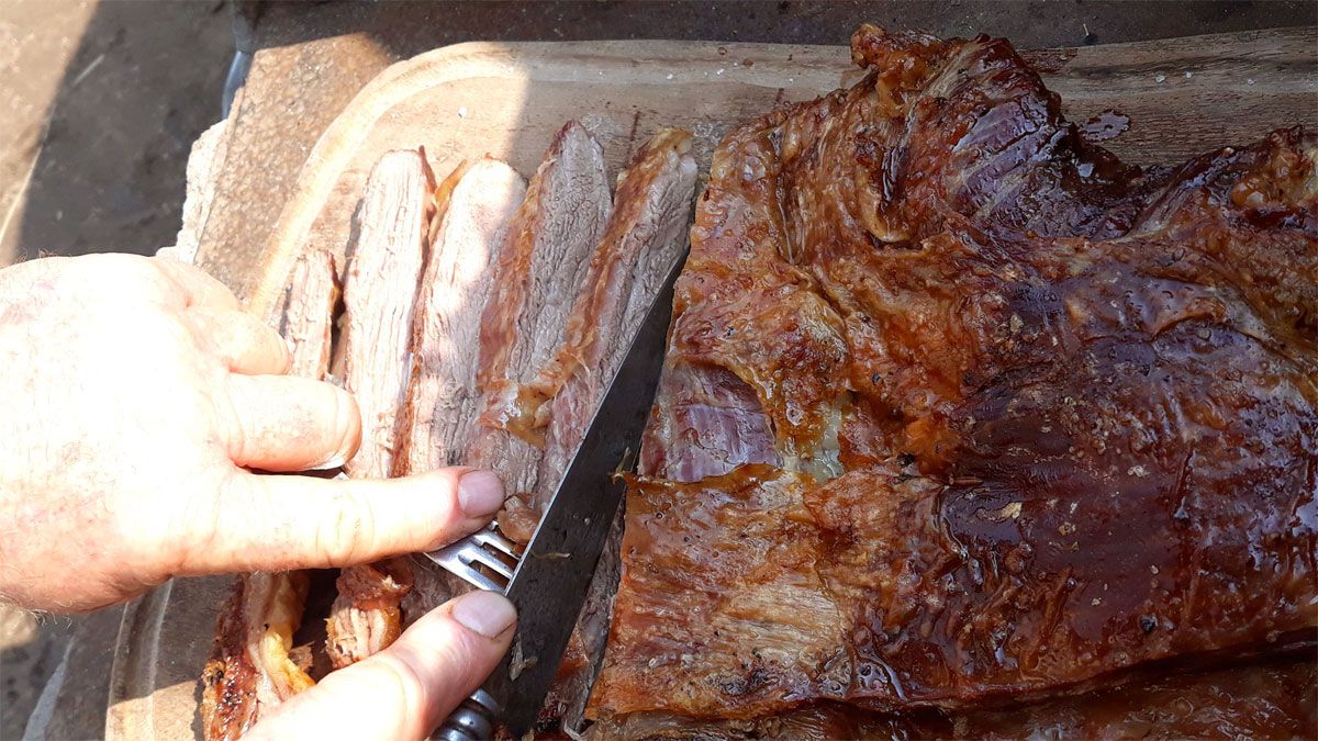 La clave está en la paciencia, ya que mientras más se demore su cocción, más garantías hay de que al cortarlo en finas lonjas, generalmente al final del asado, aparezca su jugosidad, terneza y sabor incomparable.