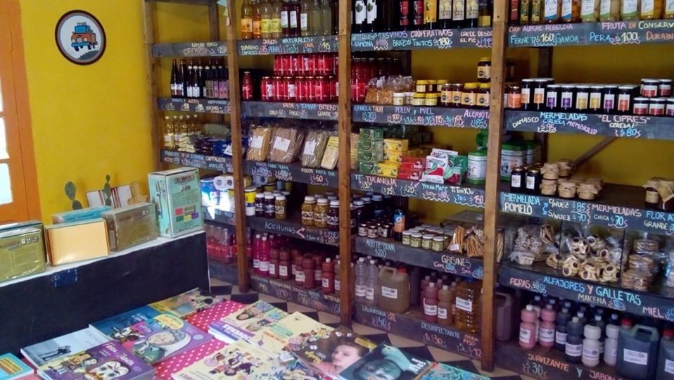 Pueden adquirirse conservas, mermeladas, salsa de tomate, fideos, harina integral, galletitas, arroz integral, jugos, cerveza artesanal, productos de limpieza, cosmética y aseo personal, aromáticas, yerba mate, alimentos sin agrotóxicos, frutas, cuadernos, libros, entre otros.