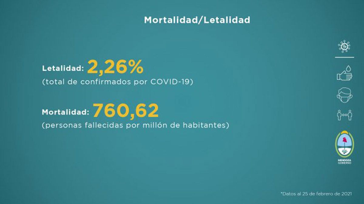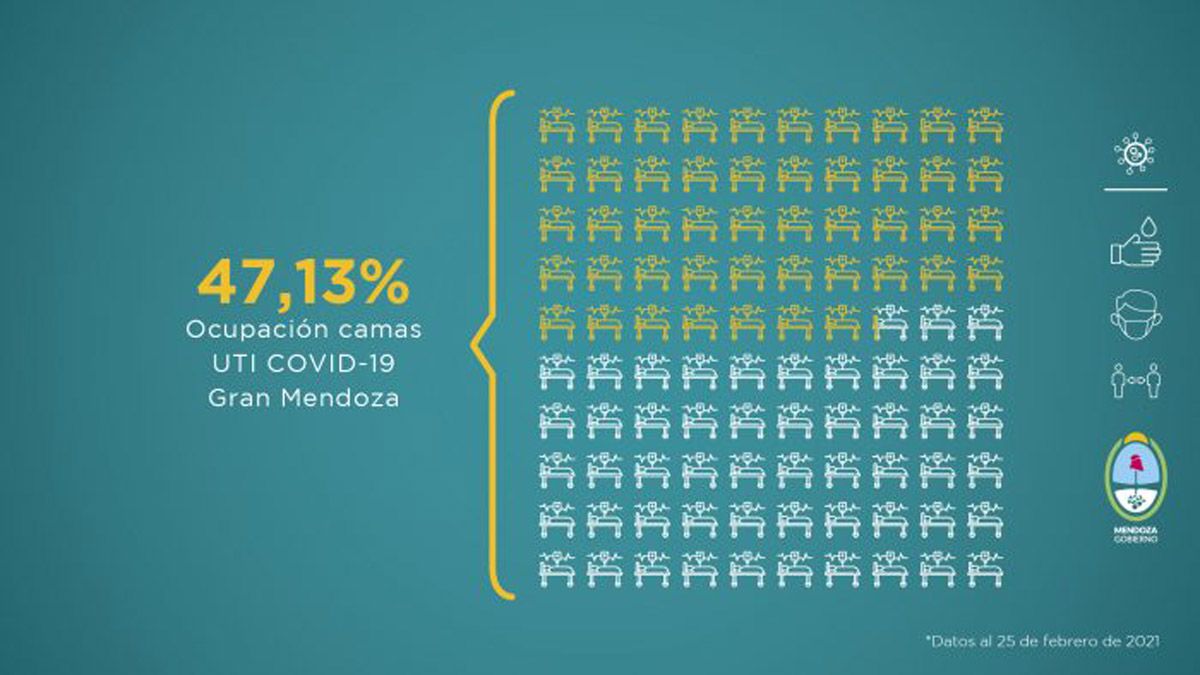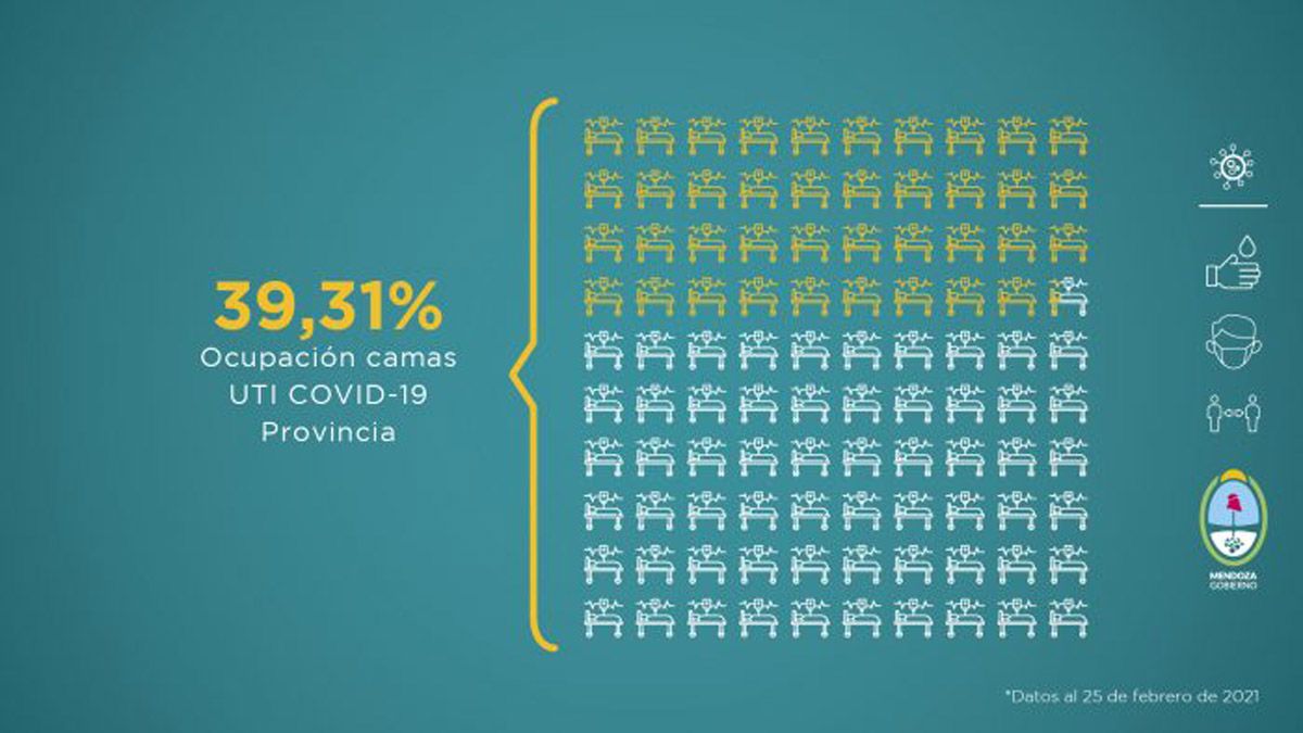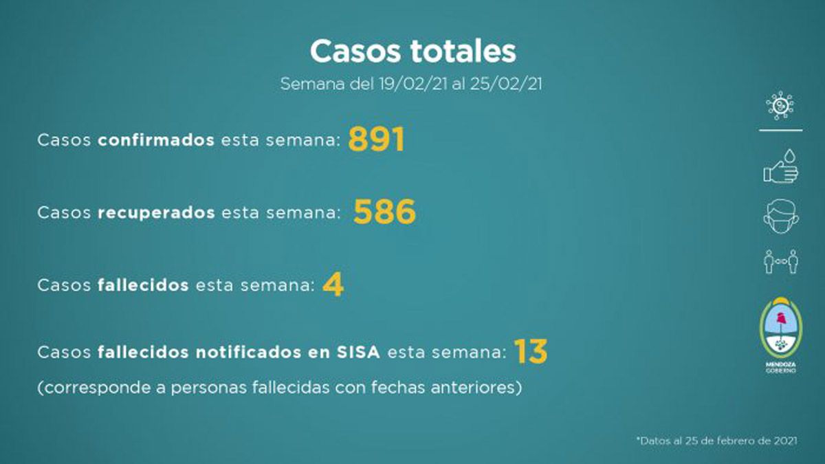 El Gobierno de Mendoza informa todos los viernes la situación sanitaria de la provincia, ante la pandemia de la Covid-19. Este nuevo reporte fue elaborado teniendo en cuenta distintas variables que se evalúan a la hora de tomar medidas en función del avance de la enfermedad. Esta entrega comprende datos recopilados de la semana del 19 al 25 de febrero.