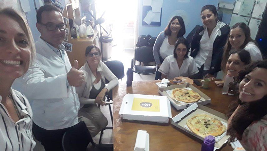 Así, puertas adentro, más precisamente en la cocina, el personal siguió amasando bollos de pizza, dejándolos levar lo necesario, dándoles el formato acostumbrado y cocinándolos hasta alumbrar esos manjares tan necesarios para los que cuidan y nos cuidan.