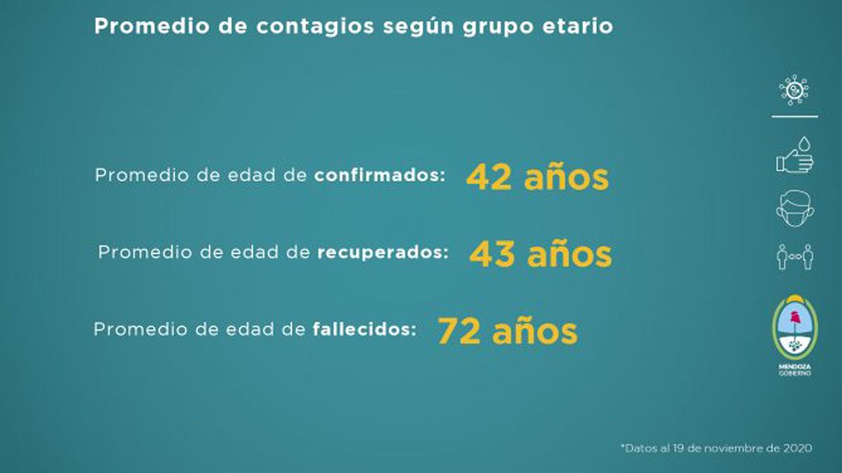 La franja de los más jóvenes continúa siendo el grupo etario que más contagios registra. Por lo general, este sector transita la enfermedad con síntomas leves. El promedio de edad de recuperados es de 43 años, de fallecidos 72 años y de confirmados 42 años.