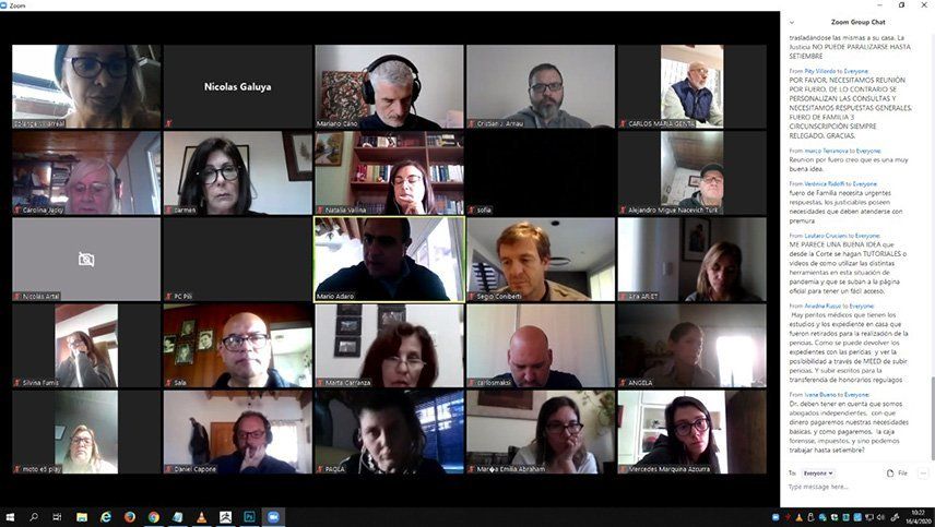 Esta semana, la Suprema Corte de Justicia hizo una videoconferencia por Zoom con 500 abogados y el equipo del Plan Tecnológico para sacar dudas y explicar algunos aspectos de la virtualidad. El supremo Mario Adaro encabezó el encuentro.
