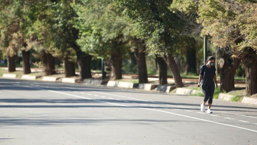 En general, se respeta el distanciamiento social recomendado y no se ven más de dos personas juntas -salvo el caso de padres con sus hijos pequeños- en los espacios verdes del Gran Mendoza, donde hay preventores y profesores de Educación Física controlando que se cumplan las reglas para evitar los contagios de coronavirus.