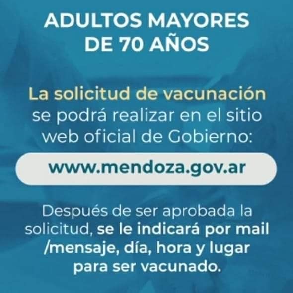 El Gobierno de Mendoza habilitó una página web para que mayores de 70 años puedan pedir un turno para recibir la vacuna contra el coronavirus. Este es un un nuevo paso en su plan de vacunación, si bien se continuará inmunizando a personal de la salud, las personas mayores de 70 años podrán comenzar a solicitar un turno a través de internet para recibir la vacuna.