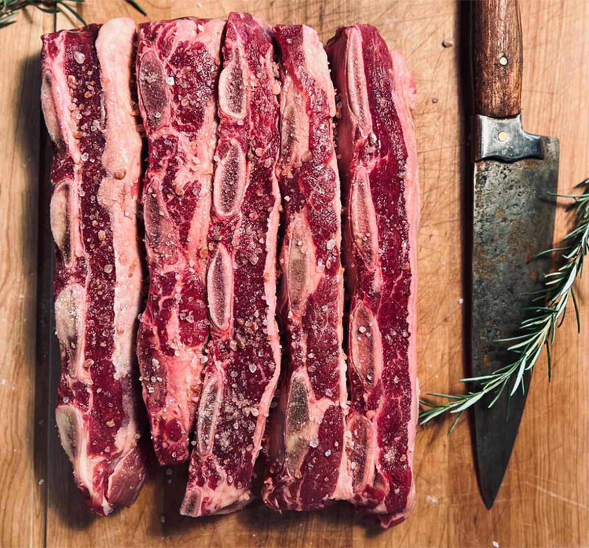 - El asado banderita se obtiene de la parte del centro del costillar, desde la cuarta a la octava costilla.