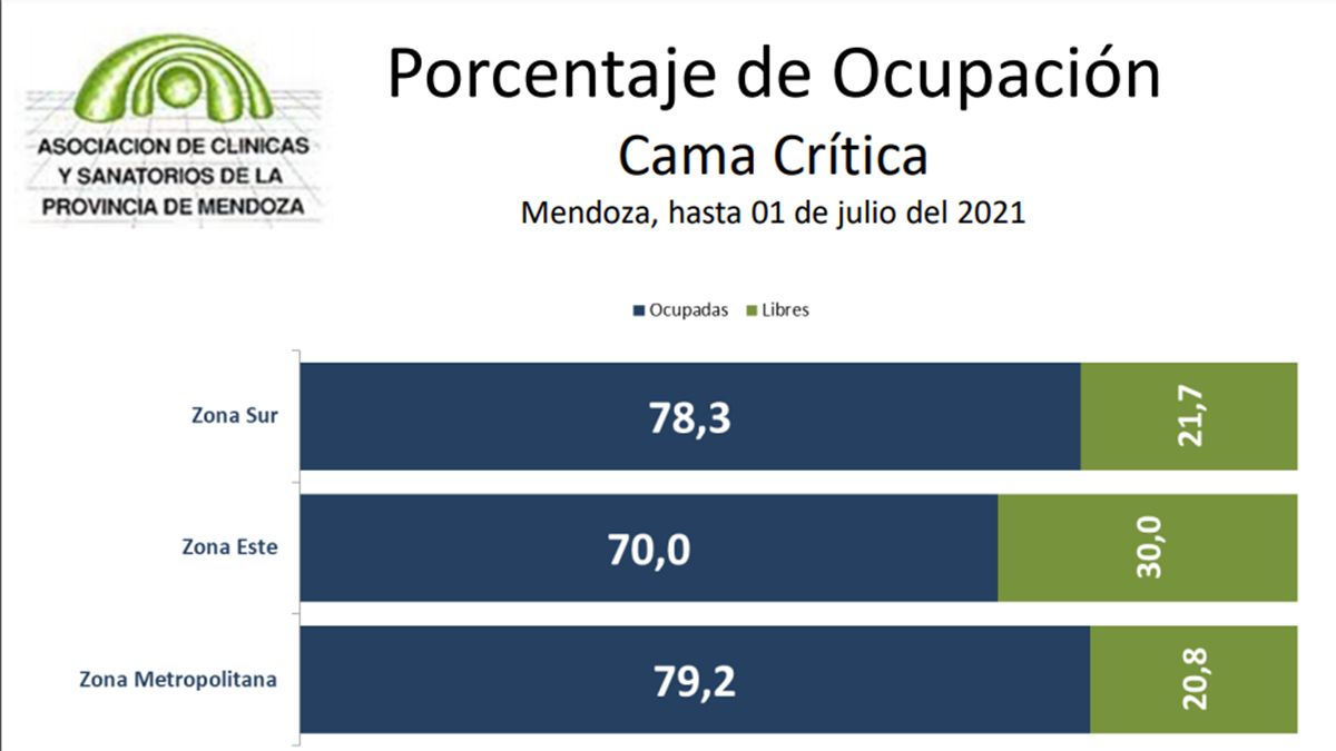 Luego de una leve tendencia a la baja en la ocupación de camas las semanas previas, la anterior tuvo una leve suba. Había estado en la zona metropolitana en 86,1%, 81% en la zona Este y 73,9% en la zona Sur. Así lo expresa el informe epidemiológico semanal que elabora la Asociación de Clínicas y Sanatorios de Mendoza (Aclisa) en base a datos de los Ministerios de Salud de la provincia, de la Nación, propios y de otras fuentes locales e internacionales.