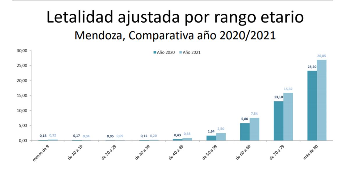 En Mendoza la última semana se han registrado 139 personas fallecidas. La tasa de letalidad acumulada en la provincia es de 2,36%. La acumulada durante 2020 es de 2,17 % mientras que durante 2021 es de 2,49 %.
