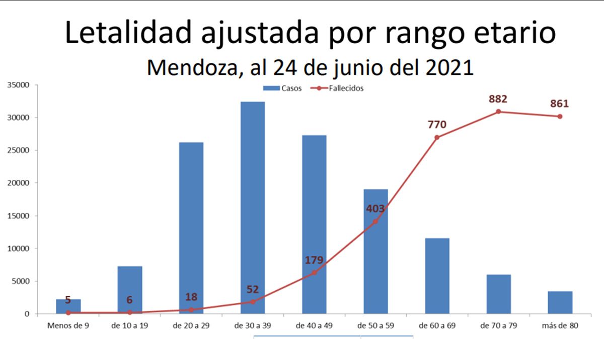 La Asociación de Clínicas y Sanatorios de Mendoza (Aclisa) dio a conocer este viernes un nuevo informe sobre la situación epidemiológica relacionada con el Covid-19. El reporte detalla la cantidad de contagios, los muertos y la ocupación de camas en terapia intensiva durante el 2021. El dato llamativo es que entre los 20 y los 49 anos se registraron los mayores aumentos en la letalidad en lo que va del año. De todas formas, es mayor entre las personas de más de 70 anos.