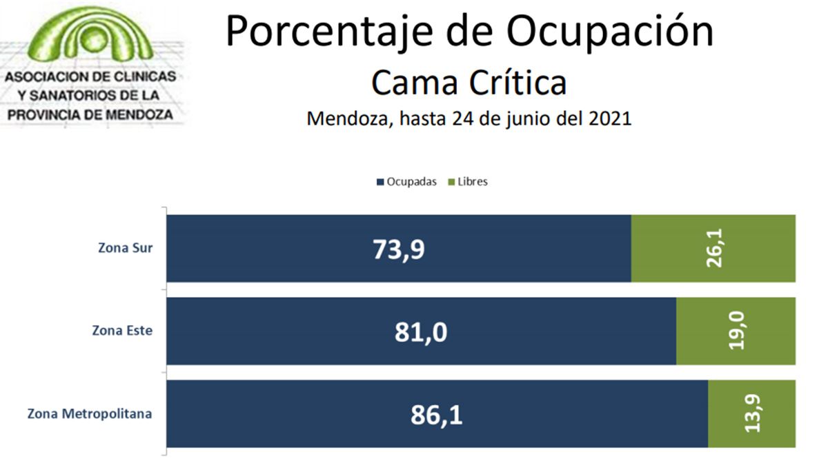 La noticia positiva en relación al registro semanal del 18 al 24 de junio es que se mantienen las mejoras de los parámetros epidemiológicos en la provincia. Sin embargo, luego de un descenso, volvió a subir la ocupación de camas en el sector privado.