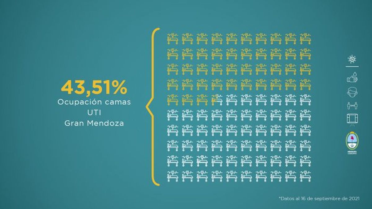 Los datos se desprenden del informe epidemiológico semanal de la Asociación de Clínicas y Sanatorios de Mendoza (Aclisa) en base a datos del Ministerio de Salud. Este nuevo reporte fue elaborado teniendo en cuenta distintas variables que se evalúan a la hora de tomar medidas en función del avance de la enfermedad. Esta entrega comprende datos recopilados de la semana del 10 al 16 de septiembre.