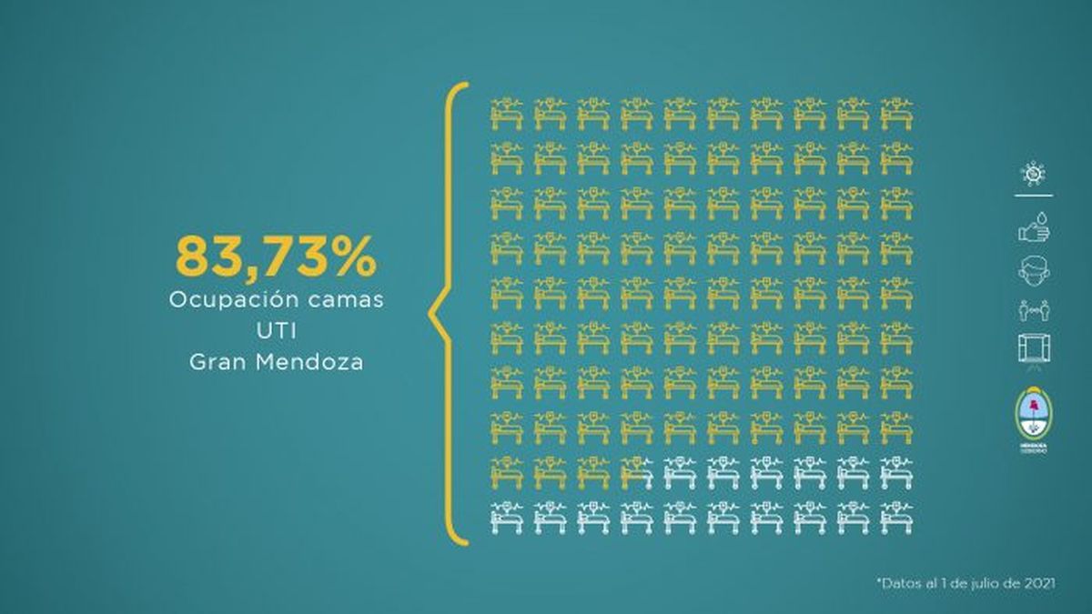 Como todos los viernes, el Gobierno de Mendoza da a conocer la situación sanitaria de la provincia ante la pandemia de Covid-19. Este nuevo reporte fue elaborado teniendo en cuenta distintas variables que se evalúan al tomar medidas en función del avance de la enfermedad. Esta entrega comprende datos recopilados de la semana del 25 de junio al 1 de julio.