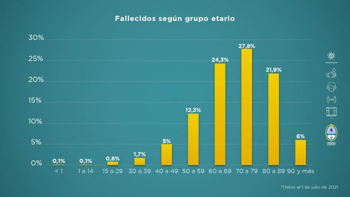 La franja de los más jóvenes continúa siendo el grupo etario que más contagios registra. Por lo general, este sector transita la enfermedad con síntomas leves. El promedio de edad de recuperados es de 40 años, de fallecidos, 70 años, y de confirmados, 41 años.