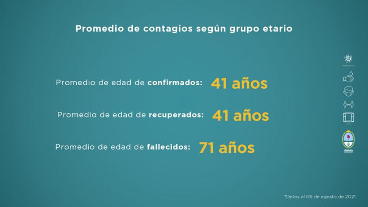 La franja de los más jóvenes continúa siendo el grupo etario que más contagios registra. Por lo general, este sector transita la enfermedad con síntomas leves. El promedio de edad de recuperados es de 41 años, de fallecidos 71 años y de confirmados 41 años.