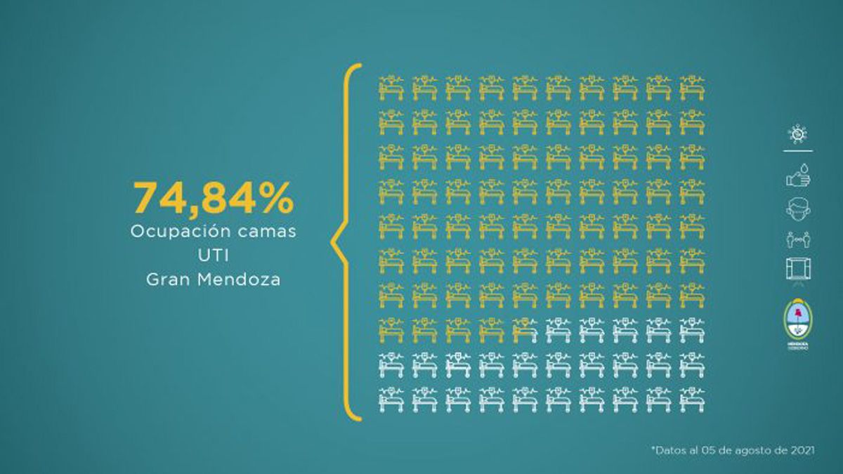 En cuanto al factor ocupacional de camas en terapia intensiva, en el Gran Mendoza fue del 74,84% y del 65,18% en todo el territorio mendocino. En el informe semanal pasado había sido de 72,50% y 65,35% respectivamente.