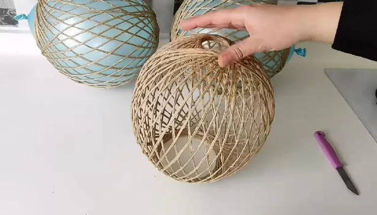 - Una vez que el hilo se encuentre bien seco, pincha el globo y verás que el mismo se desprenderá muy fácil del hilo. De esa manera, obtendrás una hermosa lámpara para decorar tu hogar.