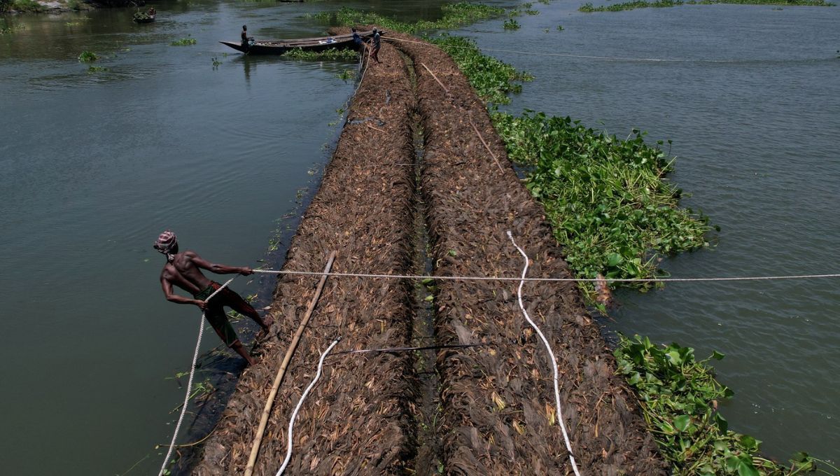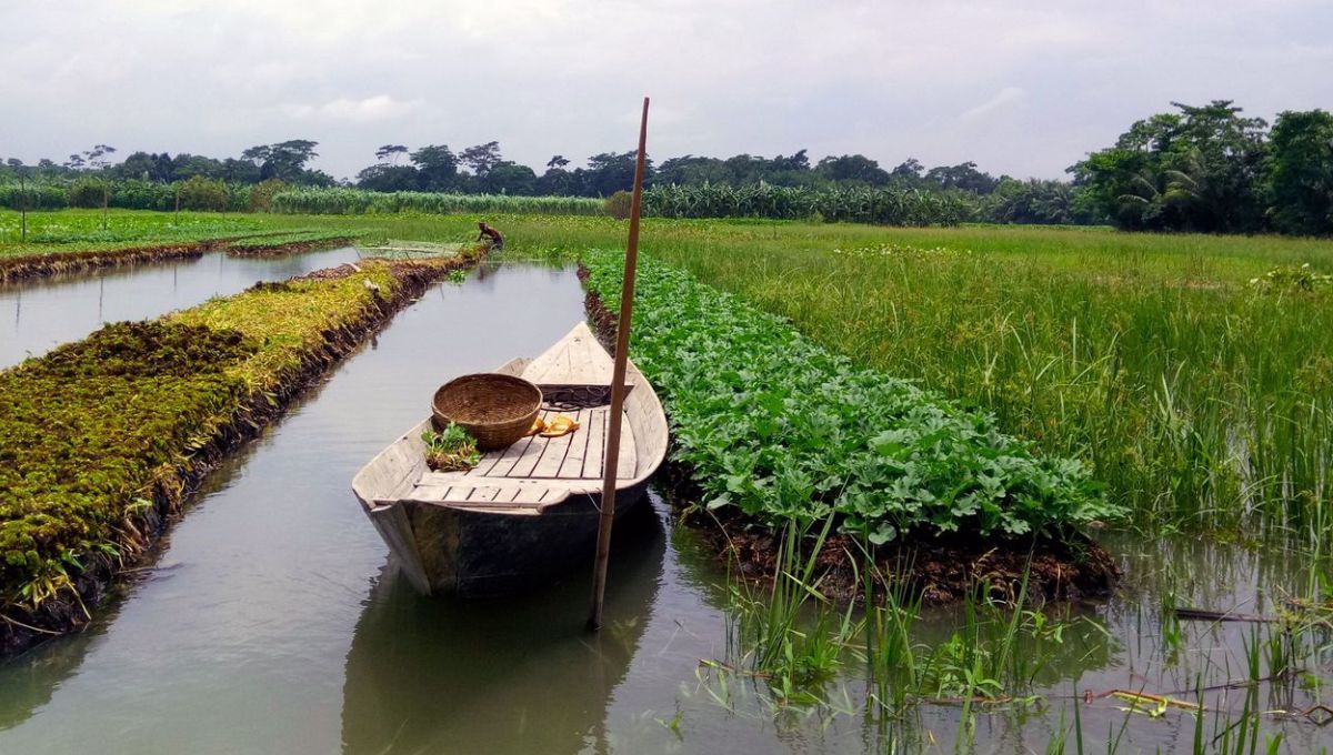 La agricultura flotante, conocida localmente como baira o dhap, es una práctica ancestral que ha sido utilizada durante siglos en las llanuras aluviales del sur de Bangladesh, en regiones como Barishal, Gopalganj y Pirojpur. Esta técnica consiste en la construcción de camas flotantes utilizando plantas acuáticas como el jacinto de agua, bambú y materia orgánica, creando plataformas flotantes donde se cultivan vegetales como espinaca roja, calabaza amarga, okra y berenjena.