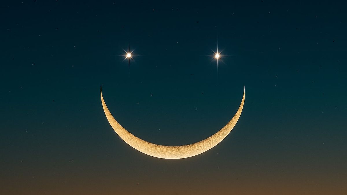 Este fenómeno astronómico se denomina Luna sonriente, y se trata de una conjunción de tres planetas. Venus, Saturno y la Luna se alinearán de manera tal que parecerá que hay una cara feliz en el cielo.