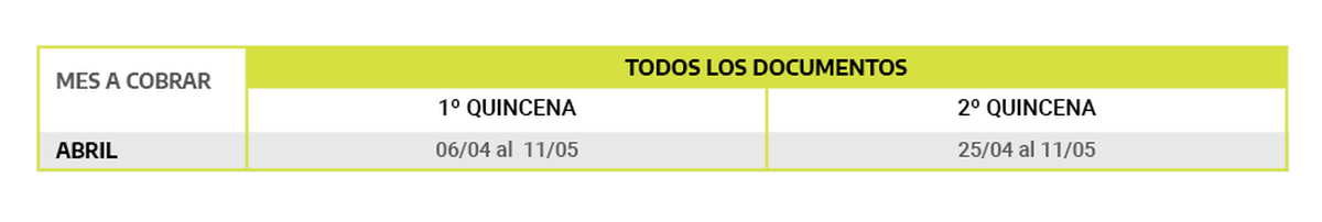 Vale recordar que tanto jubilados como titulares de asignaciones cobrarán en abril la misma suma que en marzo, producto del 12,28% de aumento que rige para el segundo trimestre del año. El próximo incremento se dará a partir de junio.