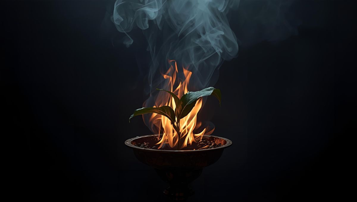 - Prende las hojas con un fósforo y deja que el humo se eleve lentamente.