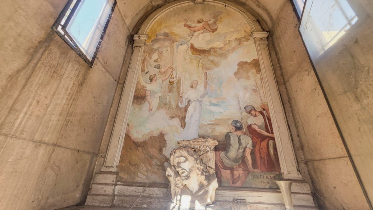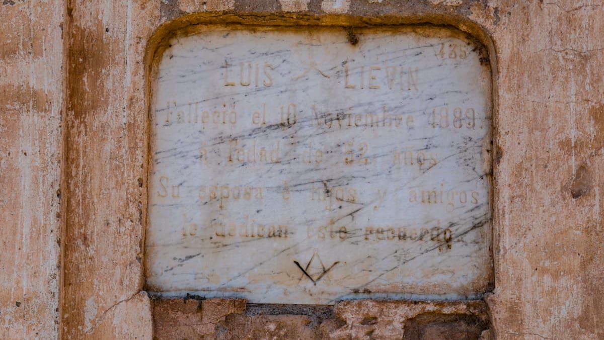 Luis Lievi fue un francés, dueño de una tonelería. En su nicho aparece uno de los símbolos masónicos más reconocibles: la escuadra y el compás.