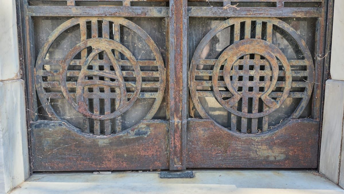 La reja posee uno de los símbolos masones funerarios característicos: las calaveras y las tibias cruzadas. En la simbología funeraria masónica, simbolizan la mortalidad, la fugacidad de la vida material y el Memento Mori ("recuerda que morirás"). También es utilizada en los ritos de iniciación, para recordarle al hermano que la vida termina y que debe vivir con rectitud.