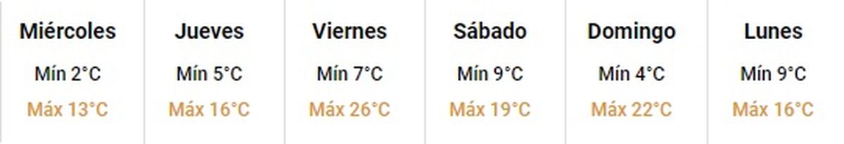 Pero el panorama tendrá un cambio de importancia el viernes, por la llegada de viento Zonda a la provincia, situación que elevará la máxima a los 26º, con ráfagas del oeste de hasta 40 km/h.