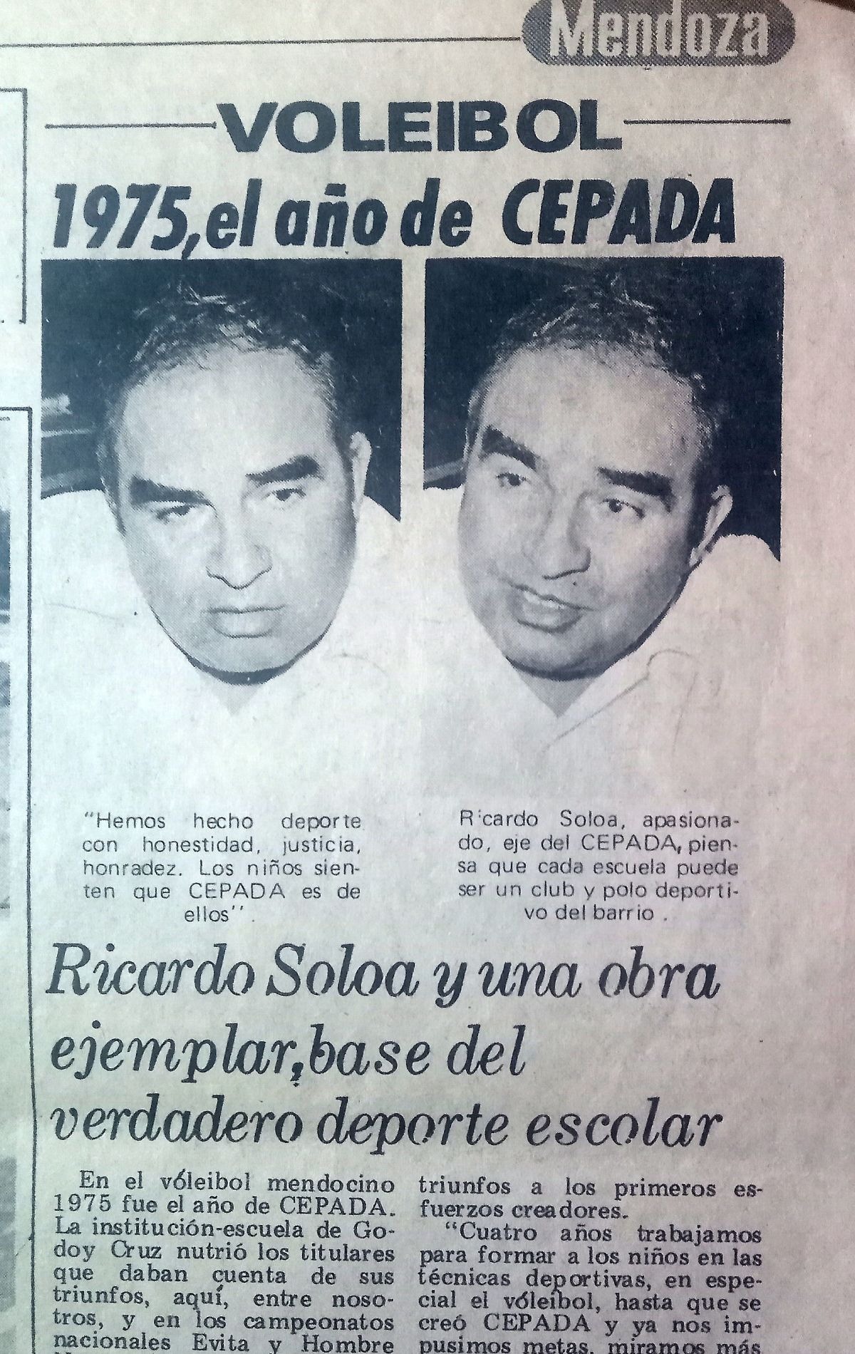 Hace 50 años nacía en el corazón de Godoy Cruz la única escuela deportiva de Mendoza, dependiente de la Coordinación de Educación Física de la Dirección General de Escuelas (DGE), el Centro Deportivo Pablo Daguerre -Cepada.-, una escuela de vóleibol y de vida. Su mentor: el profesor Ricardo Soloa.
