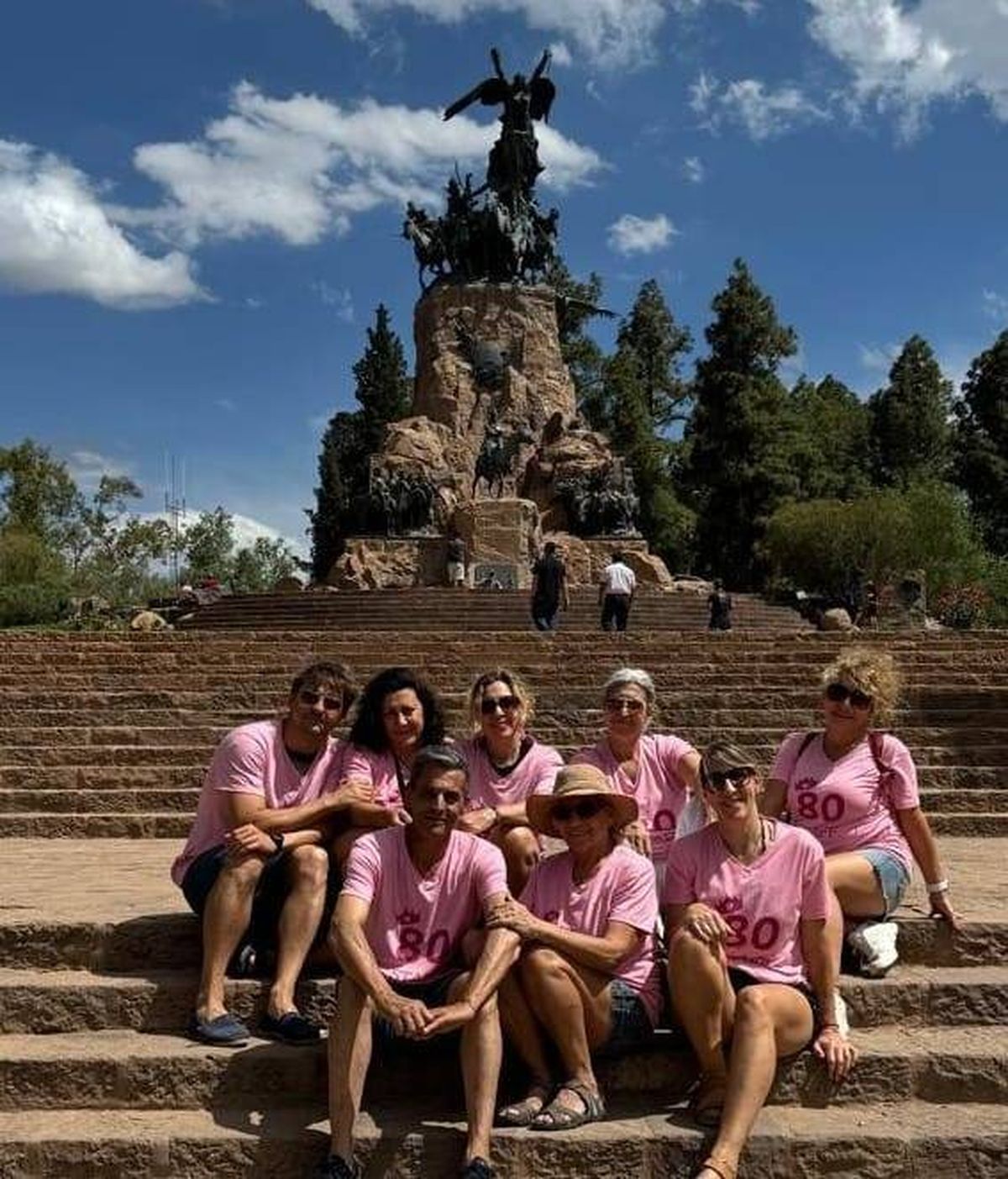 Al grupo de ocho integrantes los distinguió una indumentaria común: remeras rosas con el número 80. En el caso de Matilde, la remera señalaba: “80 y fabulosa”, mientras que sus hijos llevaba cada uno la frase que lo representa.