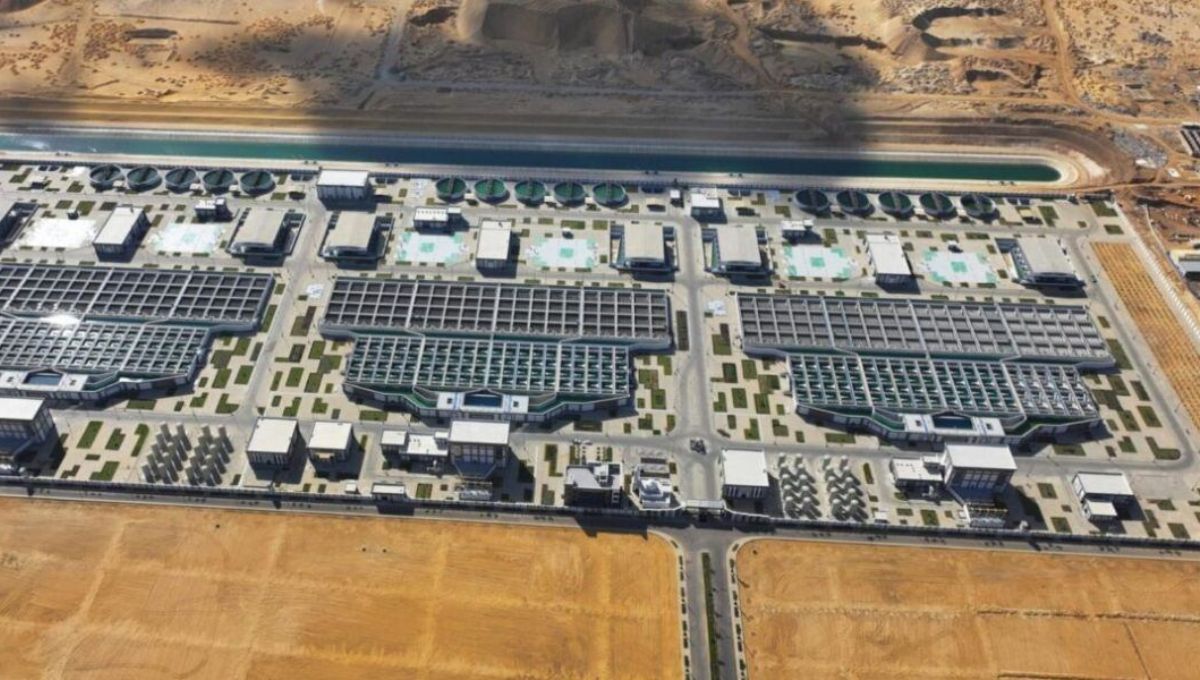 En términos concretos, la construcción del llamado “Green River”, o río verde, es un corredor hídrico y paisajístico que se extiende a lo largo de varios kilómetros atravesando la nueva ciudad. Su diseño combina canales de agua, espacios verdes y áreas recreativas, con el objetivo de generar un eje ambiental en un entorno predominantemente árido.
