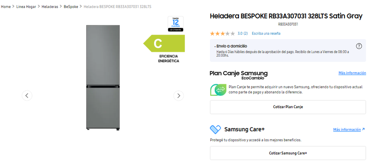 En caso de que uno quiera comprar esta heladera u otra, lo que debe hacer es ingresar a la tienda web de Samsung y hacer clic sobre la opción Plan Canje. Allí podrá ver las diferentes opciones de electrodomésticos y tendrá que elegir "Heladeras" y seguir las indicaciones.