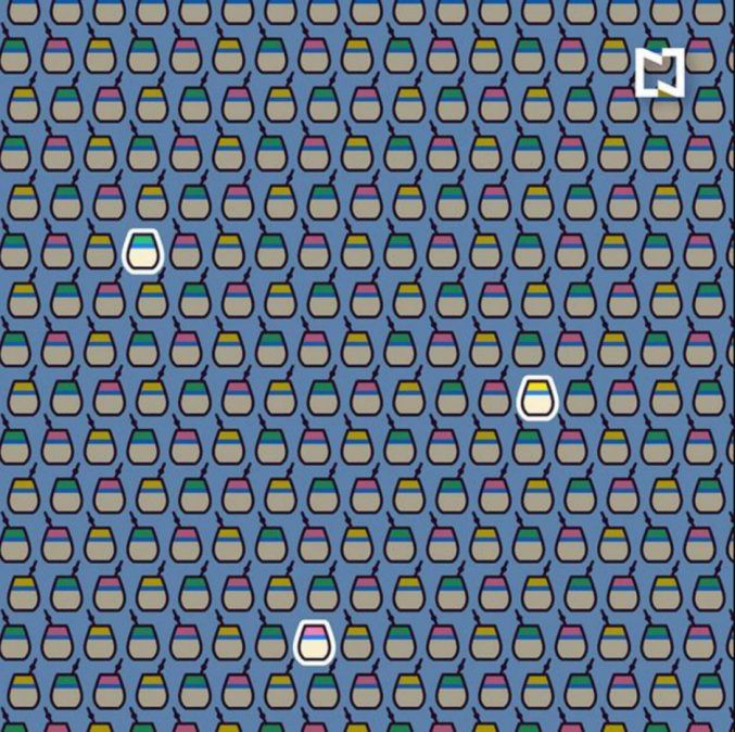En este caso se puede ver una imagen con muchos mates de varios colores y solo 3 no tienen bombilla. El reto consiste en descubrir cuáles son esos 3 mates que no cuenta con bombilla en solamente 20 segundos.