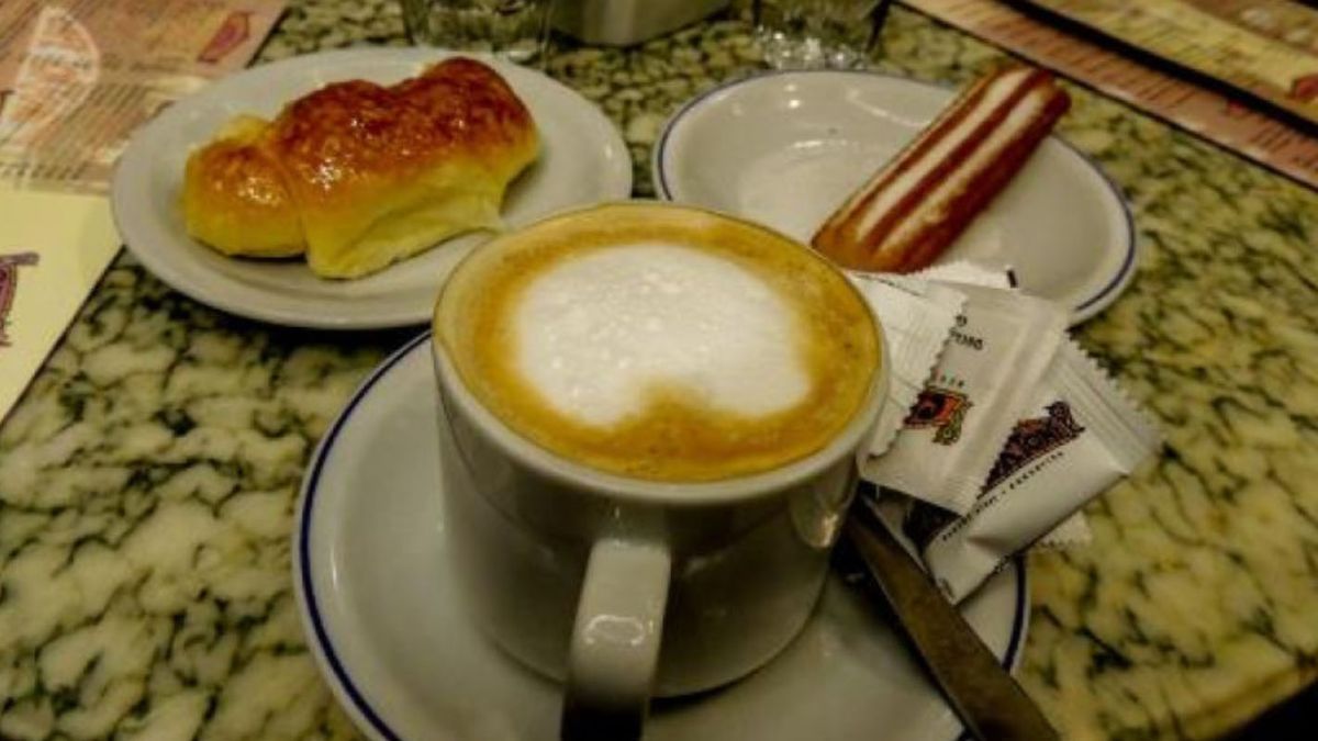 Otra de las opciones más demandadas por los visitantes del Tortoni es el desayuno compuesto por café con leche y dos medialunas, que actualmente cuesta $9.000.