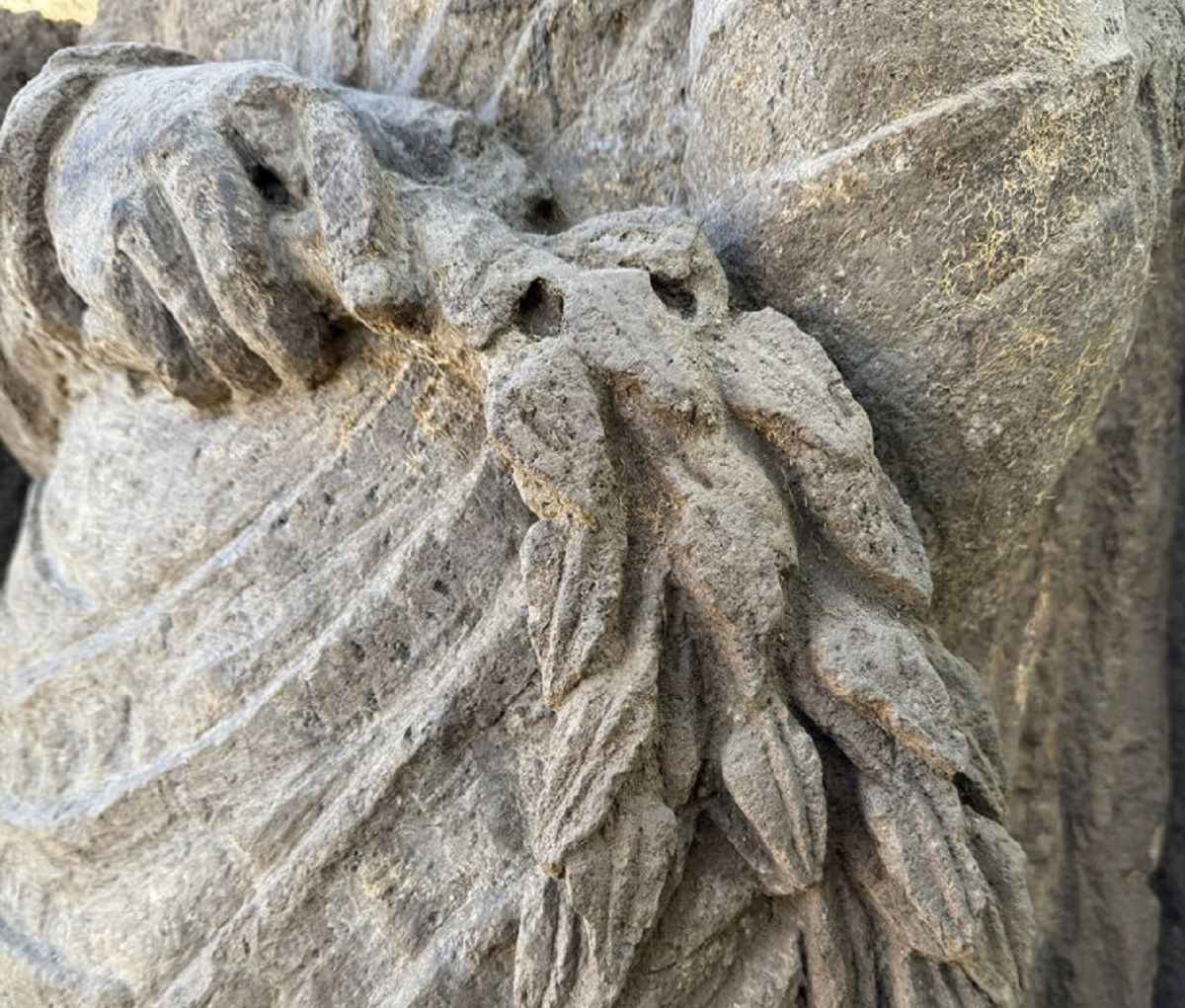 Un notable relieve funerario de tamaño casi natural, hallado en la necrópolis de Porta Sarno, sorprende por su tamaño. El descubrimiento será exhibido