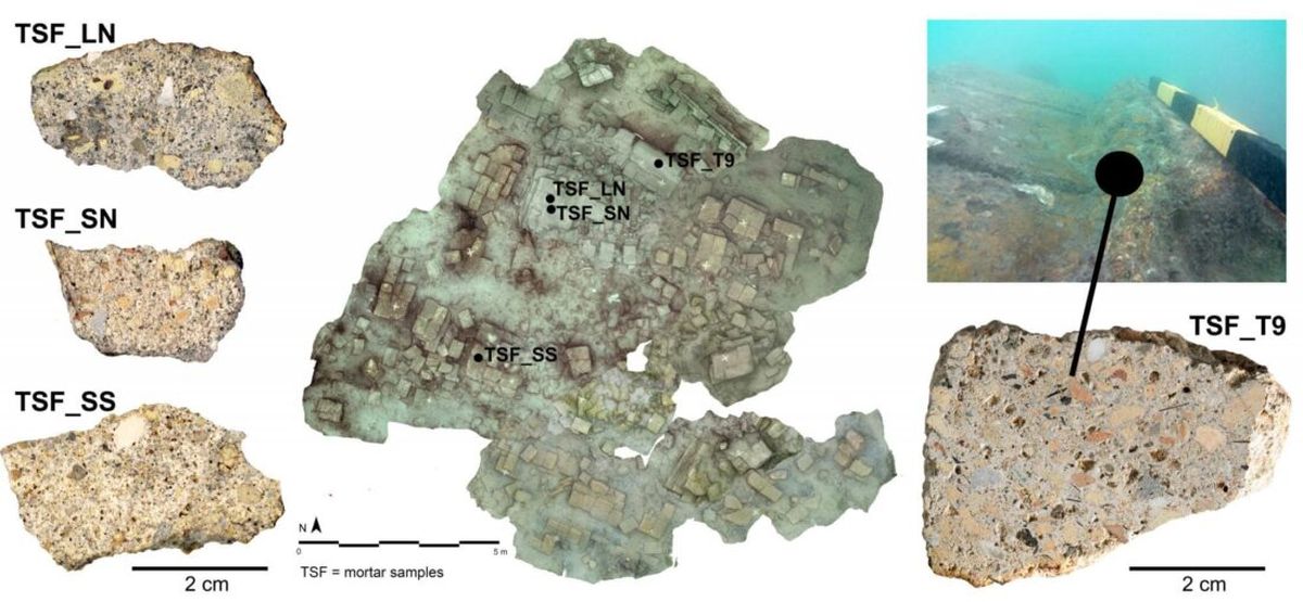 Los investigadores detectaron la presencia de un polvo volcánico llamado pulvis puteolana en el mortero utilizado para construir la cisterna. Este material provenía de los Campos Flegreos, cerca de Nápoles, a cientos de kilómetros del lugar donde se empleó.
