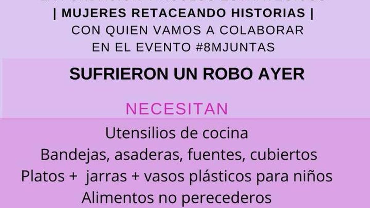 Ante esta situación hizo un llamado a la solidaridad de la comunidad para poder reponer lo perdido y continuar con la asistencia alimentaria y educativa que brindan a los niños y familias en situación de vulnerabilidad.